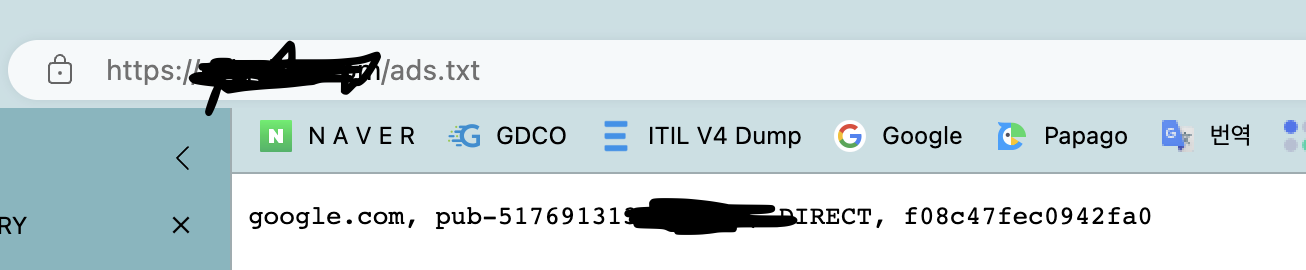 "본인티스토리도메인주소. com/ads.txt"를 검색하시면 본인이 텍스트파일로 저장한 내용이 뜬다면 제대로 완료된 것이니 확인 후 승인 기다리시기만 하면 됩니다. (대소문자에 유의하시고 소문자로 입력하셔야 합니다.)