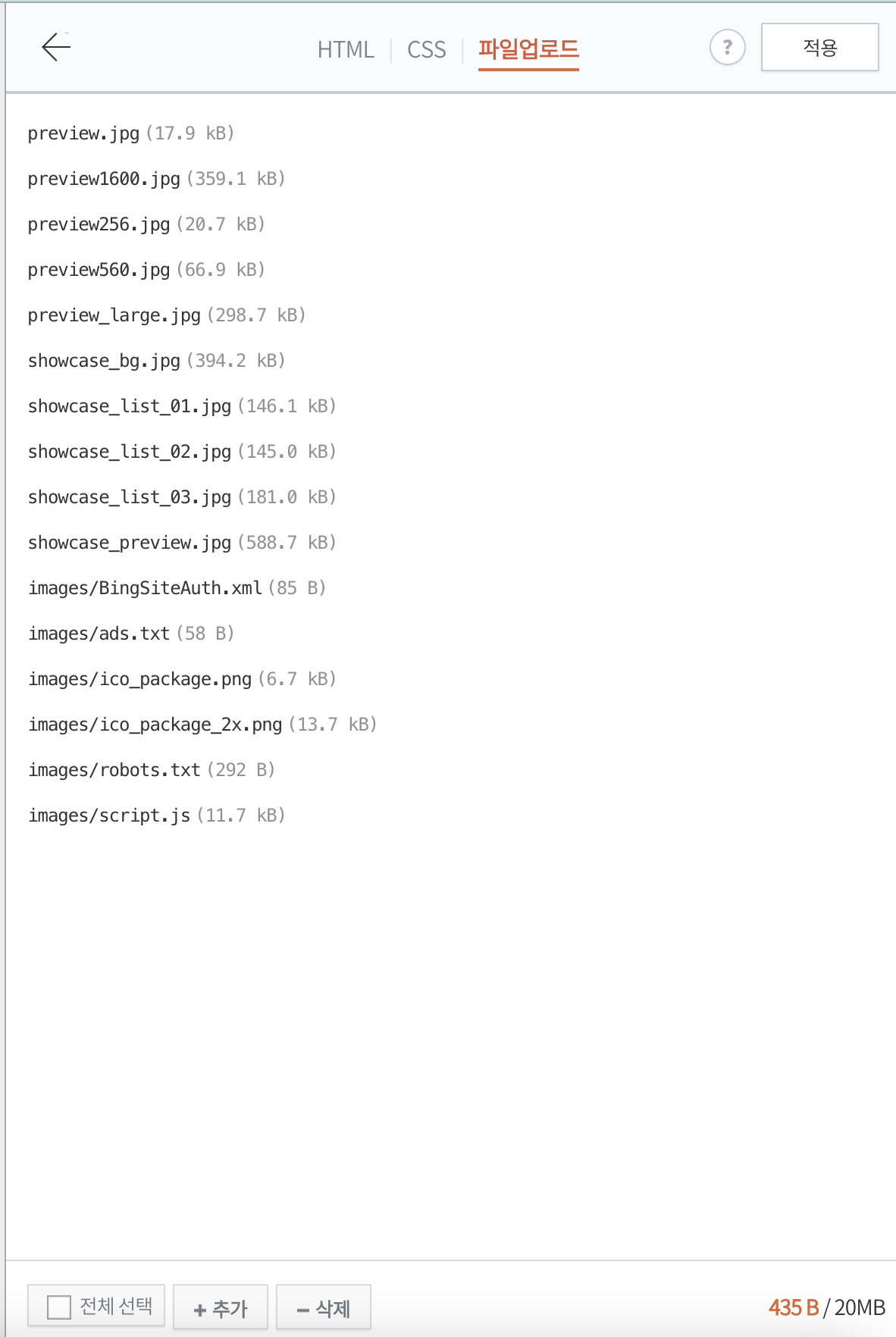 Step 3. 생성된 파일 티스토리 계정에 HTML편집에 파일 업로드